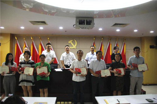 會(huì)議表彰了一批“守初心、擔(dān)使命”的優(yōu)秀共產(chǎn)黨員和先進(jìn)黨組織,黨委成員為榮獲報(bào)刊集團(tuán)先進(jìn)黨支部、優(yōu)秀共產(chǎn)黨員、優(yōu)秀黨務(wù)工作者,以及股份公司先進(jìn)基層黨組織、先進(jìn)(生產(chǎn))工作者、“五四征文”二等獎(jiǎng)的集體與個(gè)人頒發(fā)了榮譽(yù)證書。會(huì)上,黨委委員、副總經(jīng)理黃燕為2名新加入黨組織的黨員佩戴了黨徽,鞭策和激勵(lì)他們時(shí)刻不忘入黨初心,并牢記黨員的政治責(zé)任和歷史使命。