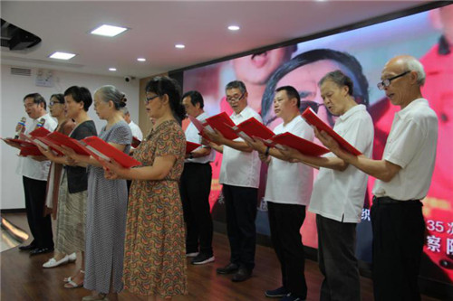 會(huì)議最后,紅七支部黨員代表深情演繹了歌曲《我和我的祖國(guó)》,極具穿透力和感染力的演唱吸引了所有參會(huì)人員“唱響同一首歌”。會(huì)議還為紅七支部舉行授旗儀式,肖昌斌表示,退休黨員們退休不褪色、離崗不離黨的精神,無愧共產(chǎn)黨員的初心,是所有年輕同志學(xué)習(xí)的標(biāo)桿。