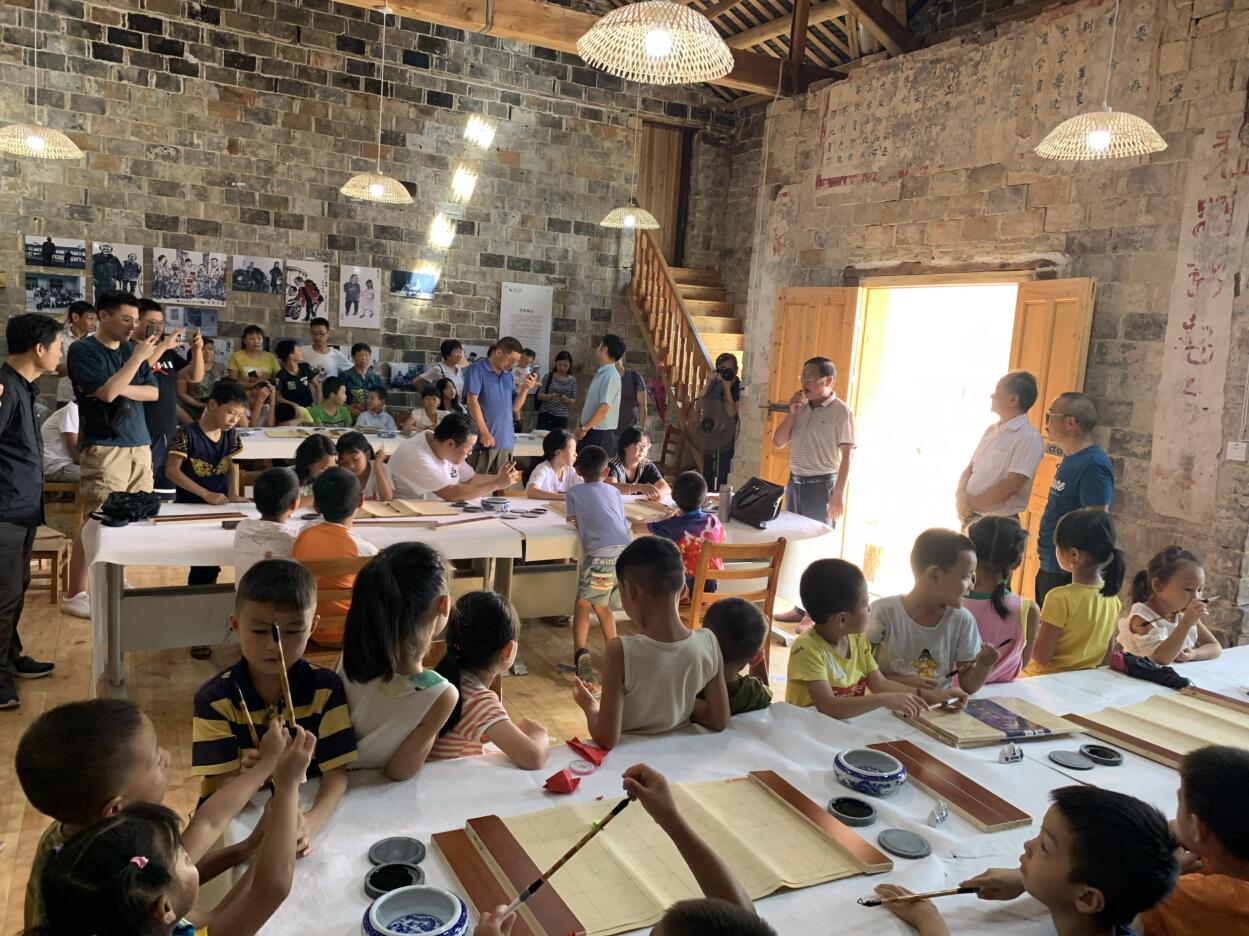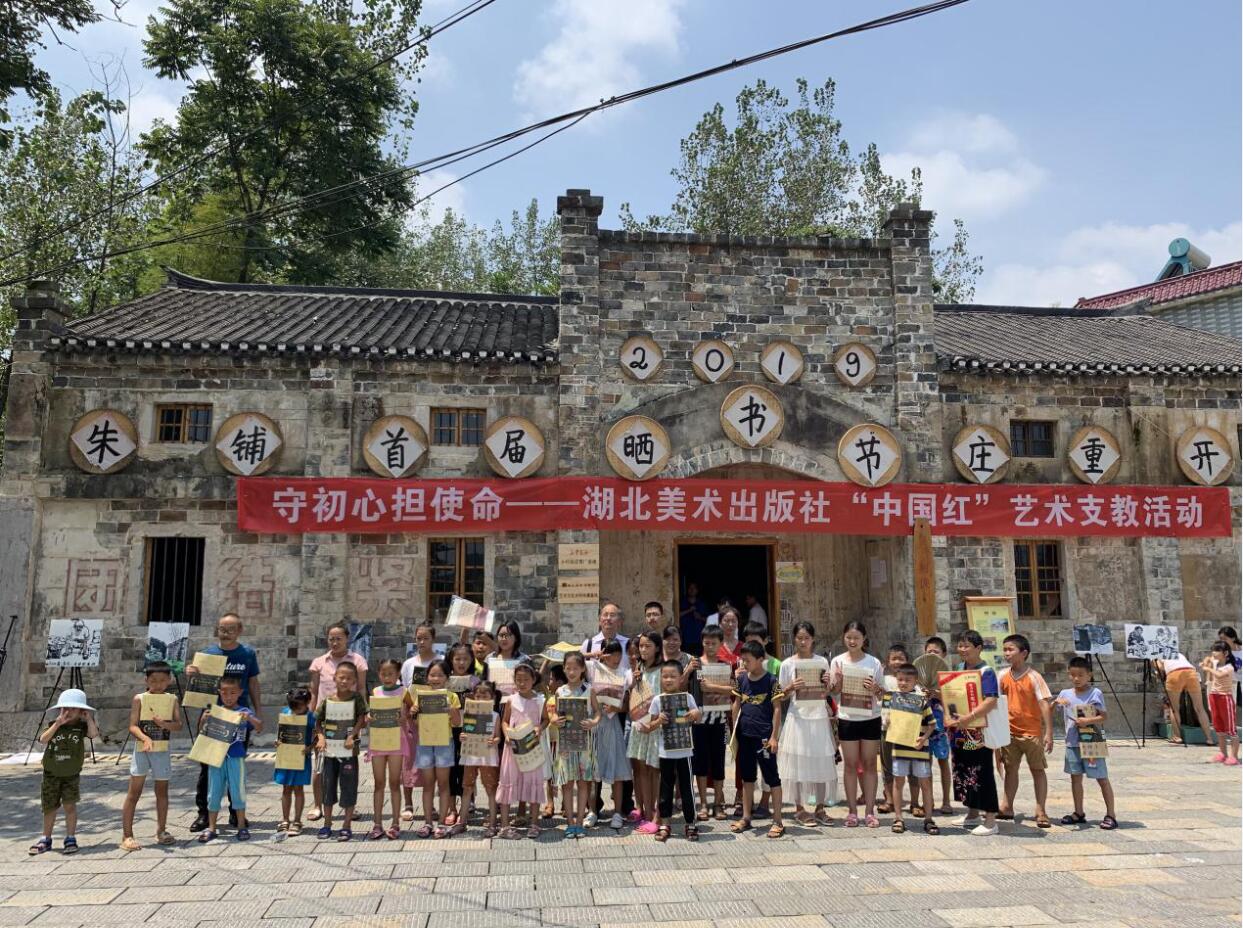 2019年8月8日, 湖北美術(shù)出版社有限公司黨總支部書記、總經(jīng)理陳輝平帶隊(duì),由黨員編輯組成的一支特殊的支教隊(duì)伍抵達(dá)大冶朱鋪村扶貧基地,在村讀活動(dòng)室給60余名朱鋪村留守少年兒童和書畫愛好者進(jìn)行了一場別開生面的書法、國畫藝術(shù)支教活動(dòng),并確定朱鋪村為首個(gè)“湖北美術(shù)出版社藝術(shù)文化鄉(xiāng)村傳播基地”,現(xiàn)場舉行授牌儀式。集團(tuán)扶貧工作隊(duì)隊(duì)長嚴(yán)強(qiáng)華,美術(shù)社總編輯余杉,美術(shù)社副總經(jīng)理應(yīng)傳偉、徐禮永,殷祖鎮(zhèn)黨委書記柯紅云,朱鋪村村支書余云沼,朱鋪村委員楊啟河、馮丹丹參加了授牌儀式。