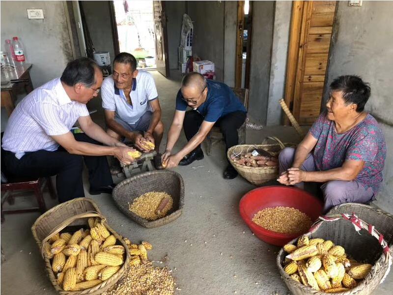 (社領(lǐng)導(dǎo)陳輝平、余杉來到幫扶對(duì)象朱耀廣的家進(jìn)行扶貧慰問。)
