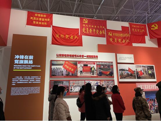 在展廳內(nèi),大家跟隨講解員的介紹認(rèn)真觀看“運(yùn)籌帷幄、掌舵領(lǐng)航”“生死阻擊、艱苦卓絕”“英雄城市、英雄人民”“八方支援、共克時(shí)艱”“疫后重振、浴火重生”“團(tuán)結(jié)協(xié)作、命運(yùn)與共”等6個(gè)主題內(nèi)容展區(qū)。近1.5公里的展線,1100余張照片,1000余件(套)實(shí)物展品,45個(gè)視頻作品,生動(dòng)地再現(xiàn)著武漢人民、湖北人民與新冠病魔抗?fàn)幍牟磺论E,記錄著黨中央舉全國(guó)之力予以支持、一方有難八方支援的英雄篇章。全息投影的ICU病房通過(guò)虛擬投影技術(shù),再現(xiàn)了白衣戰(zhàn)士生死救援的時(shí)刻。病房里的醫(yī)護(hù)人員與病魔賽跑,盡其所能挽救更多的生命。他們用醫(yī)者仁心托舉起生命的方舟,讓更多患者看到了生命的希望?!盎鹄咨裆结t(yī)院建設(shè)”展區(qū),吊車、反光背心、安全帽、對(duì)講機(jī),一下子把大家?guī)Щ氐綗峄鸪臁?zhēng)分奪秒的施工現(xiàn)場(chǎng)。建設(shè)者們用10天時(shí)間建成火雷神山,完成了建筑史上的一個(gè)奇跡,也創(chuàng)造了中國(guó)速度,展現(xiàn)了中國(guó)力量。