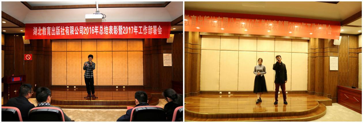 在中場(chǎng)休息時(shí),教育社青年員工齊天恒、熊雨薇、趙培倫給大家奉獻(xiàn)了精彩節(jié)目。