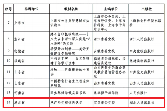 日前,由湖北人民出版社出版的《從嚴(yán)治黨規(guī)律再認(rèn)識(shí)》一書,入選中央組織部“全國干部培訓(xùn)好教材推薦書目”。該書目是中組部會(huì)同有關(guān)部門組成專家組,從全國各省區(qū)市推薦的干部培訓(xùn)教材中集中遴選、審核而出的,全國只有二十三種好教材入選。人民社《從嚴(yán)治黨規(guī)律再認(rèn)識(shí)》一書經(jīng)省委組織部推薦,是湖北省唯一入選的干部培訓(xùn)教材。