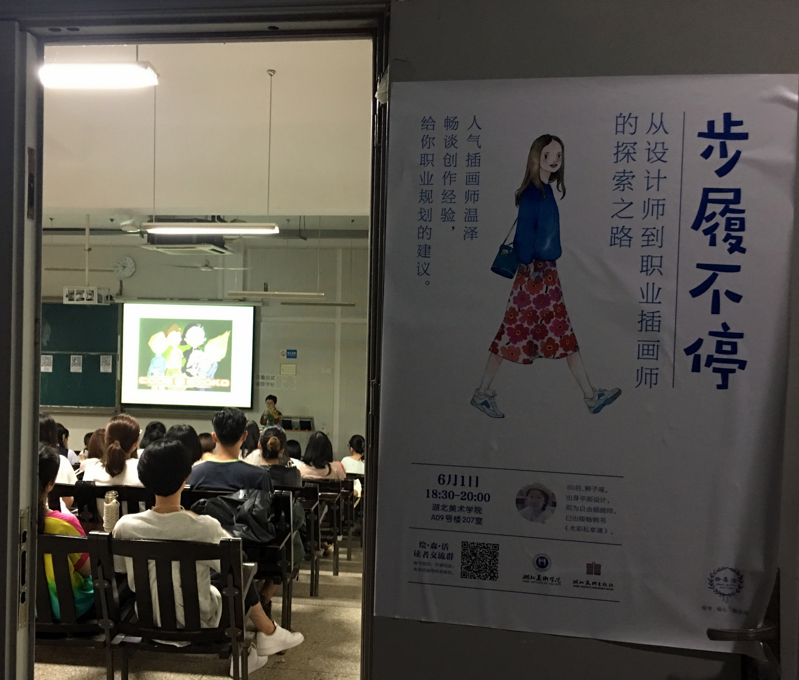 6月1日,人氣插畫師溫澤在湖北美術學院舉辦“步履不停,從設計師到插畫師的探索之路”——《水彩私享課》圖書分享活動。