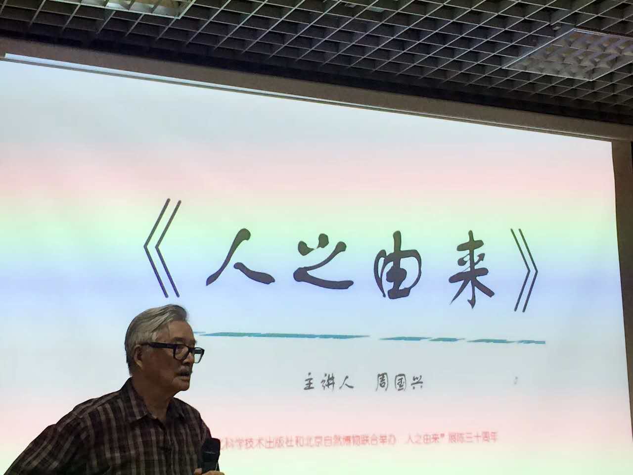 1986年,時(shí)任北京自然博物館副館長(zhǎng)的周國(guó)興籌辦了《人之由來(lái)》基本陳列,新的展覽修改了館內(nèi)原有的人類起源舊展覽并重新布展,力圖打破舊有觀念,真正從自然史的角度,尤其是自然科學(xué)的角度,來(lái)闡述人類起源與進(jìn)化的歷史,以及人類個(gè)體發(fā)育、發(fā)展的進(jìn)程,從而打破對(duì)人自身的神秘看法。在籌展期間,周國(guó)興還將他設(shè)想的展覽內(nèi)容編成了一本科普小冊(cè)子,也命名為《人之由來(lái)》。同年,民族出版社出版了這本《人之由來(lái)》,后來(lái)這本書(shū)還被譯成維吾爾文、朝鮮文等多種少數(shù)民族文字。