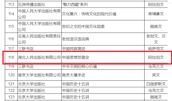 近日,《中國新聞出版廣電報》第8版公示了2017年絲路書香工程重點翻譯資助項目272種,湖北人民出版社出版的《中國思想發(fā)展史》位列其中。