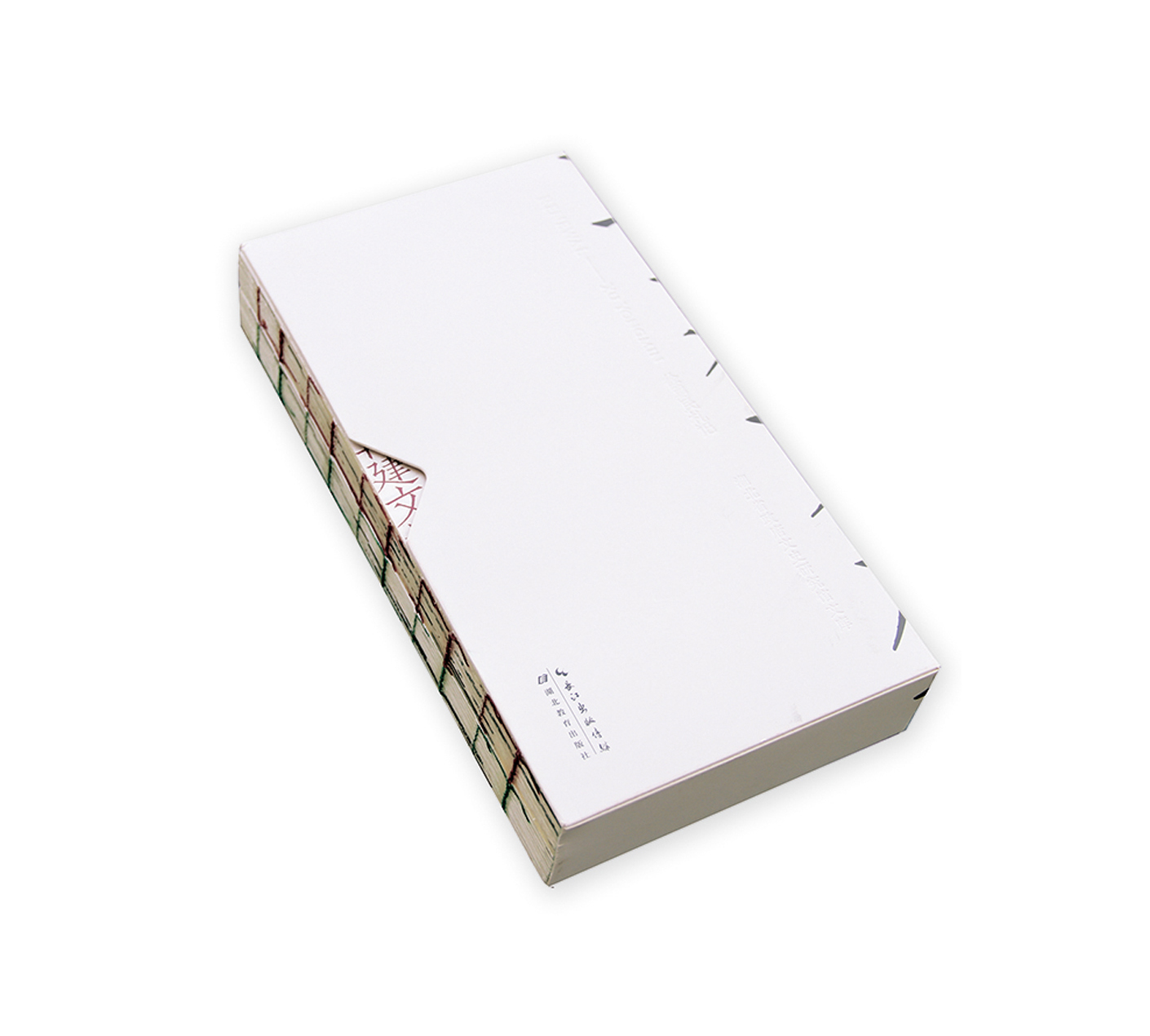 該書由產(chǎn)品設(shè)計部主任牛紅主持設(shè)計。據(jù)介紹,書名“再建文檔”四個字邊緣粗糙,筆畫內(nèi)有白色小點(diǎn)雪花般稀松飄過,放大看更能品味出空靈和野趣;副標(biāo)題中英文書名直接壓凹,更加突出主書名。兩冊的內(nèi)容色彩比例及節(jié)奏強(qiáng)弱互相呼應(yīng)。裸背裝的棉線采用了最原始的對比色紅綠來回勾勒,紅綠色也隨意地貫穿在書名、目錄和內(nèi)文及函套中,與圖書風(fēng)格形成統(tǒng)一。選用仿宣紙作為承載作品的介質(zhì),則表達(dá)了一種真實(shí)隨意和舒適自然感。