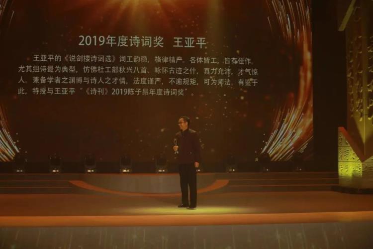 11月3日,《詩(shī)刊》2019年度陳子昂詩(shī)歌獎(jiǎng)?lì)C獎(jiǎng)晚會(huì)在四川遂寧舉行,詩(shī)人杜涯摘得年度詩(shī)人獎(jiǎng),王亞平獲年度詩(shī)詞獎(jiǎng)。
