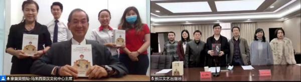 2020年11月26日上午,由于疫情原因,《雍正皇帝?九王奪嫡》馬來西亞文版新書首發(fā)式采取網(wǎng)絡(luò)連線的方式,在線上召開。馬來西亞國家語文局局長拿督哈茲阿邦·沙拉胡丁,馬來西亞漢文化中心主席拿督吳恒燦,青城文化事業(yè)有限公司總經(jīng)理何慕杰,馬來西亞漢文化中心副主席拿汀李玉涓,董事經(jīng)理吳明倪,總經(jīng)理?xiàng)钜愕?,辦公室主任陳依微,長江出版?zhèn)髅焦煞萦邢薰靖笨偨?jīng)理李植,對(duì)外合作部部長簡文學(xué),副部長王玉蘭,長江文藝出版社社長尹志勇,副總經(jīng)理陳俊帆,等有關(guān)同志參加了本次活動(dòng)。