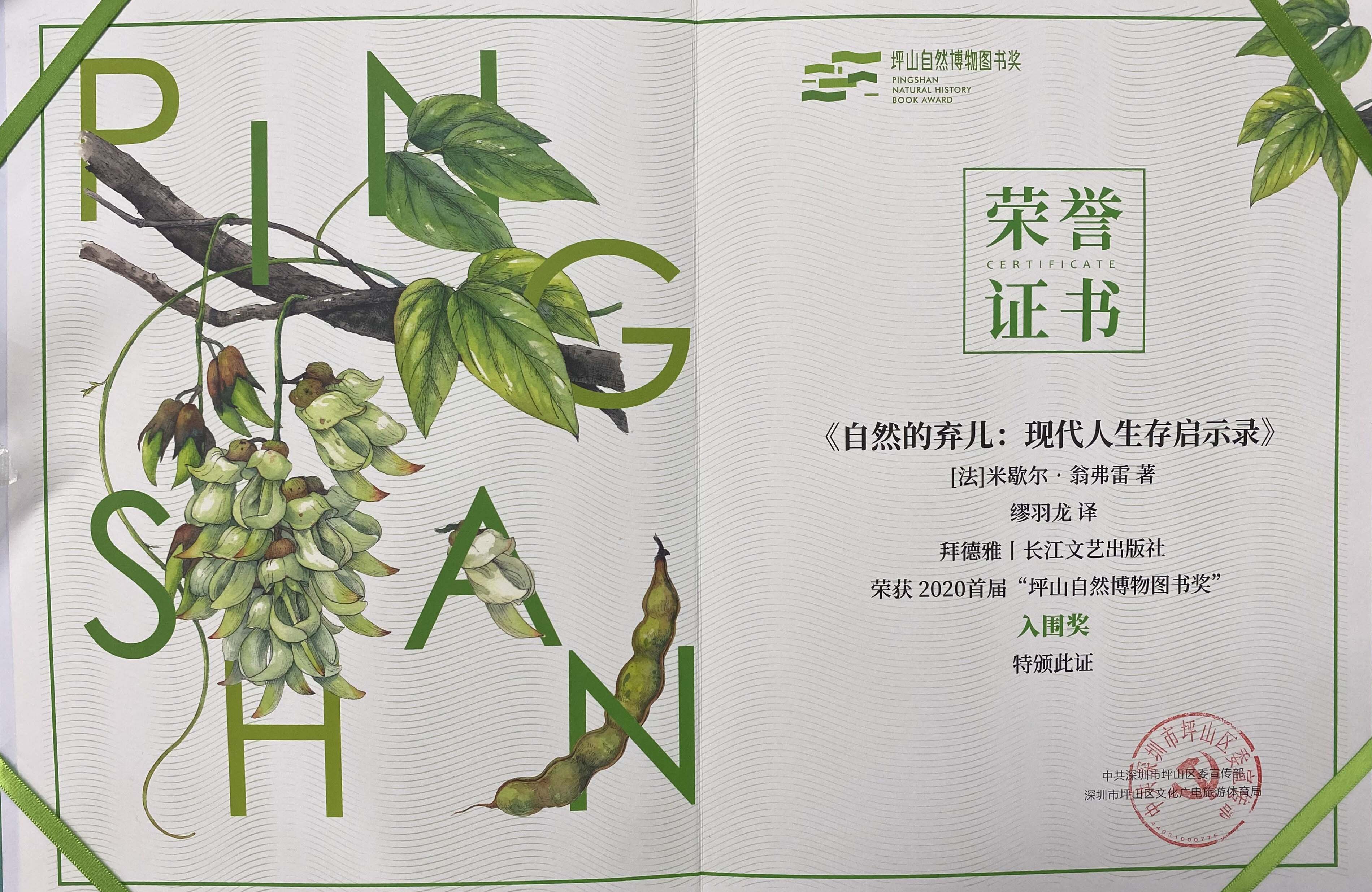 喜報(bào)!《自然的棄兒:現(xiàn)代人生存啟示錄》獲2020年深圳坪山自然博物圖書獎(jiǎng)