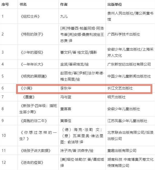 喜報!長江文藝出版社《小滿》獲第八屆“中國童書榜——年度最佳童書”