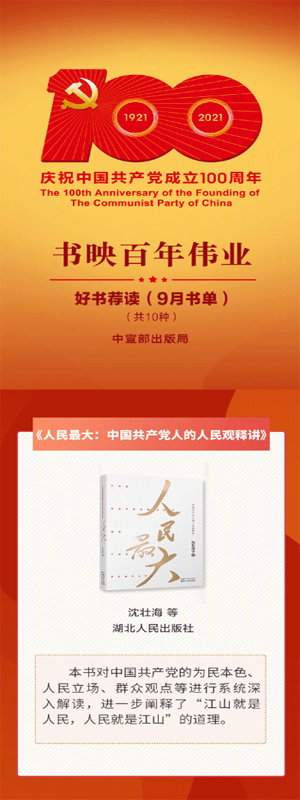 喜訊!《人民最大:中國共產(chǎn)黨人的人民觀釋講》入選中宣部“中國共產(chǎn)黨100周年推薦書單”