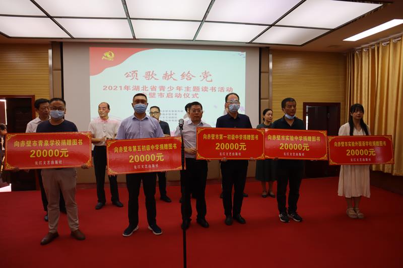 啟動儀式上,長江文藝出版社向赤壁市第一初級中學(xué)、赤壁市實驗中學(xué)、赤壁市第五初級中學(xué)、赤壁市實驗外國語學(xué)校、赤壁市青泉學(xué)校捐贈價值10萬元的圖書。