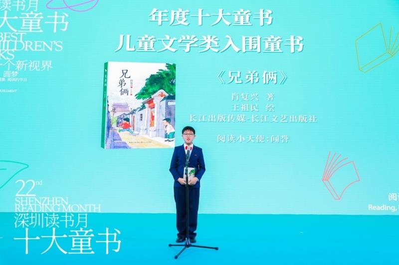 活動(dòng)現(xiàn)場(chǎng),《兄弟倆》“閱讀小天使”聞譽(yù)分享閱讀心得:“在深圳,有許多從農(nóng)村來打工的家庭,我真心希望他們都能遇到像歐陽太那樣善良友好的房東;也祝愿天下的兄弟姐妹都能像大河小河兄弟倆那樣相親相愛,雖然性格愛好特長(zhǎng)不一樣,但最終都成為了社會(huì)的棟梁之才。《兄弟倆》入選了2021年度十大童書30強(qiáng)。作為一名熱愛閱讀的少年,我強(qiáng)力推薦該書,它讓我們堅(jiān)信:天生我才必有用!無論面對(duì)生活怎樣的困難,我們都要對(duì)未來充滿信心和希望?!?/span>