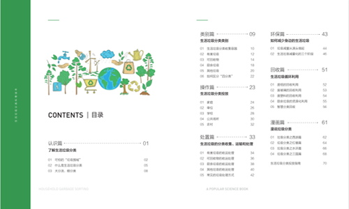 全書分認識篇、操作篇、環(huán)保篇、處置篇、回收篇以及漫畫篇,從什么是垃圾分類,為什么要進行垃圾分類,不同的垃圾如何投放、如何處理,如何減少生活垃圾,生活垃圾的回收和再利用等方面向讀者普及生活垃圾分類的相關(guān)知識,語言活潑,圖文并茂,可操作性強,集科普和實用性于一體。