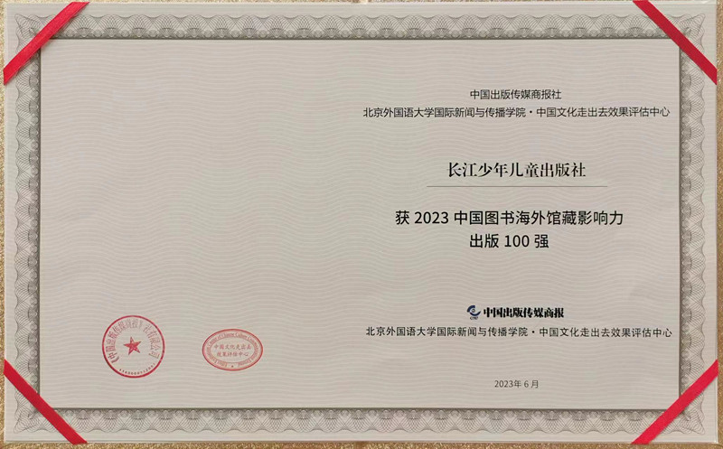 長少社連續(xù)8年位列“中國圖書海外館藏影響力出版100強。在最新公布的“2023年度中國圖書海外館藏影響力百強排行榜”中,長少社排名第47位,連續(xù)2年在全國專業(yè)少兒社中居第二位。