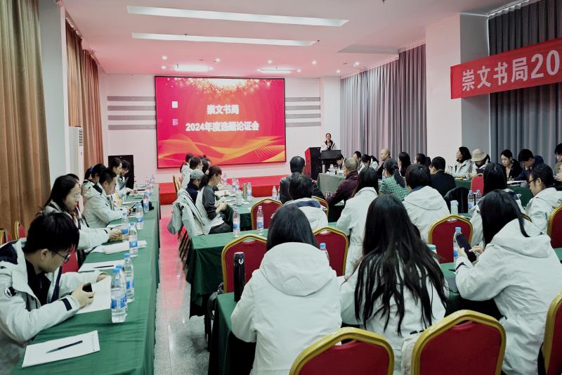 (通訊員 李瑋)為高質(zhì)量做好2024年度選題工作,嚴(yán)格落實選題論證制度,崇文書局于11月22日至23日召開2024年度選題論證會。會議由副總經(jīng)理胡心婷主持,社領(lǐng)導(dǎo)、全體編輯等近70人參加會議。