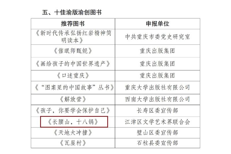 長少社《長腰山,十八鍋》獲評(píng)“十佳渝版渝創(chuàng)圖書”
