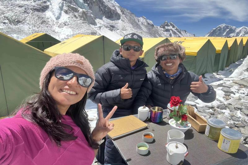 普爾尼瑪·什雷斯塔是尼泊爾頂尖的女性登山者之一,到目前為止,她已經(jīng)攀登了世界上14座最高山峰中的8座,展現(xiàn)了不屈不撓的探險精神。普爾尼瑪酷愛茶葉及茶文化,對中國傳統(tǒng)文化十分感興趣。2023年,湖北中圖長江文化傳媒有限公司將崇文書局出版的《荊楚文萃》系列作為“荊楚書架”圖書整體輸出至尼泊爾,由尼泊爾當(dāng)代出版社負(fù)責(zé)人凱蘭·高塔姆先生負(fù)責(zé)在尼泊爾地區(qū)推廣。高塔姆先生一直熱衷于宣傳中國傳統(tǒng)文化,他熱情地將漢英對照版《茶經(jīng)》推薦給了普爾尼瑪,兩個對中國文化都極感興趣的人因為這本書有了聯(lián)系。普爾尼瑪對《茶經(jīng)》愛不釋手,她將這本書帶到了珠穆朗瑪峰的登山者營地圖書館,希望讓來自世界各地的探險者們了解更多中國經(jīng)典和中國文化。