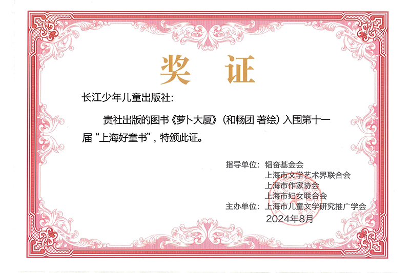 8月14日,由上海市兒童文學(xué)研究推廣學(xué)會(huì)主辦的第十一屆“上海好童書”頒獎(jiǎng)儀式在上海友誼會(huì)堂舉辦。長江少年兒童出版社的《手足琴》榮獲第十一屆“上海好童書”稱號(hào),《蘿卜大廈》入圍“上海好童書”。