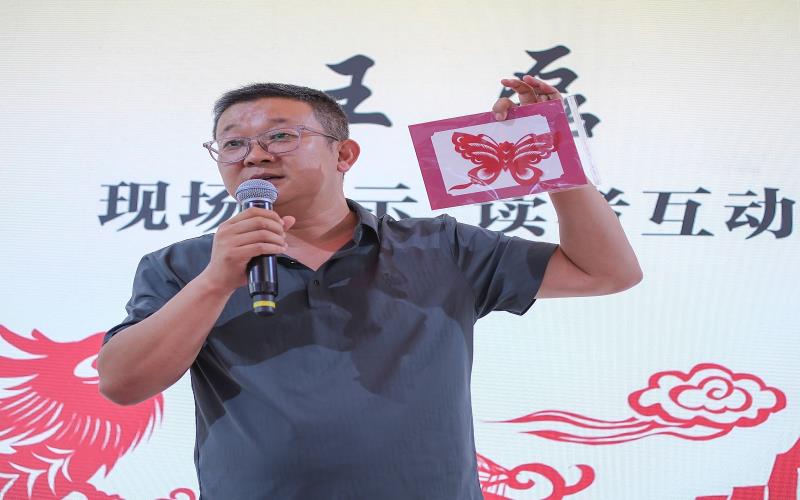 活動(dòng)現(xiàn)場(chǎng),孫氏剪紙藝術(shù)傳承人王磊即興創(chuàng)作,一張張紅紙?jiān)谒那墒种谢麒蜩蛉缟幕B、寓意吉祥的紋樣,他結(jié)合作品分享了剪紙的歷史淵源、技藝特點(diǎn)、地域特色等,讓觀眾在欣賞藝術(shù)的同時(shí),更深入地了解剪紙的文化內(nèi)涵。