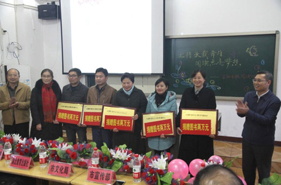 活動現(xiàn)場,黃石市武漢路小學(xué)、老虎頭小學(xué)、沈家營小學(xué)、武黃路小學(xué)和花湖小學(xué)五所學(xué)校被授予“閱讀示范基地”,湖北教育出版社和黃石市分公司向5所學(xué)校共捐贈圖書10萬元。黃石市市委宣傳部、市文化局、黃石港區(qū)教育局領(lǐng)導(dǎo)等參加活動。