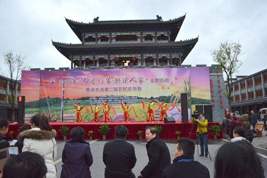 本網(wǎng)訊(通訊員徐軍濤)11月22日上午,湖北省2016年“書香門第 耕讀人家”暨第二屆農(nóng)民讀書節(jié)活動在孝感市孝南區(qū)丹陽古鎮(zhèn)隆重開幕。本次活動由湖北省新聞出版廣電局主辦、孝感市文體新廣局和孝南區(qū)人民政府承辦。湖北省新聞出版廣電局黨組成員、副局長謝銘,孝感市市委常委宣傳部長仇平貴,孝感市人民政府黨組成員張漢平,孝感市文體新廣局局長宋明芳等領(lǐng)導(dǎo)出席活動。湖北省各地市州農(nóng)家書屋辦公室相關(guān)負責(zé)人、農(nóng)家書屋管理員,本地農(nóng)民代表共500余人參加了此次活動。