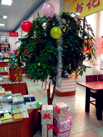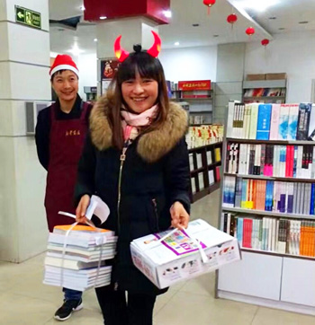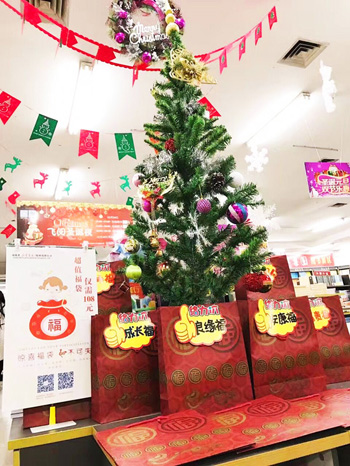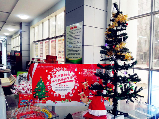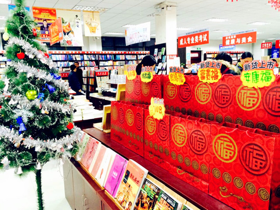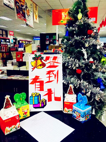 按照新華集團統(tǒng)一部署,各新華書店對店內(nèi)外進行了精心的節(jié)日布置,彩燈、氣球、吊旗、花環(huán)、麋鹿、圣誕樹,無不洋溢著濃濃的節(jié)日氣氛,頭戴圣誕帽笑臉盈盈的工作人員、隨處可見的活動指示牌、婉轉(zhuǎn)耳邊的“節(jié)日快樂”問候,讓人流連書店。