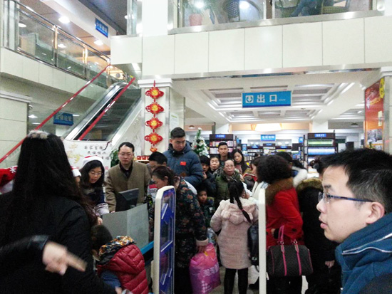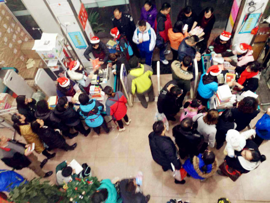 本次活動特別設(shè)置了“飛閱圣誕夜”環(huán)節(jié),讀者24日18:00-21:30到店消費享受全場圖書購書優(yōu)惠,隨著時間推移,折扣力度越大,低至66折,24日其他時段及25日全天購書均可享受9折優(yōu)惠。夜色來臨,黃石、宜昌、丹江口新華書店排起了長長的隊伍,隨著工作人員不斷揭曉新的活動折扣,現(xiàn)場陣陣驚呼,讀者抱著一摞摞圖書在熱烈的氣氛中等待最大優(yōu)惠來臨。