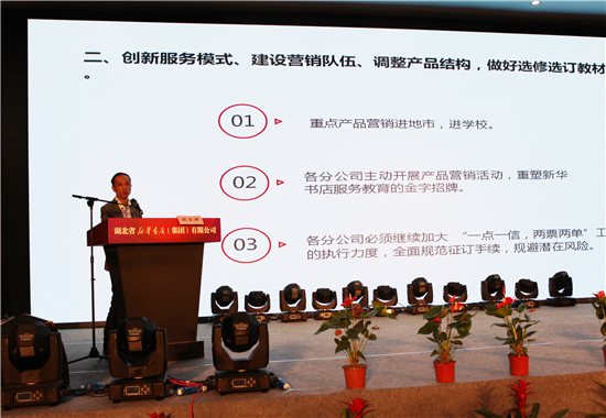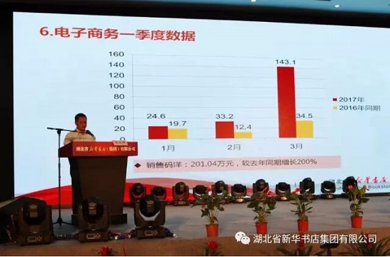 新華集團黨委書記、董事長、總經(jīng)理邱從軍在會上作了題為《拼搏趕超 跨越發(fā)展 以更大魄力為實現(xiàn)全年目標夯實基礎》的講話,并就下階段工作提出明確要求。他指出,一季度共呈現(xiàn)出四大工作亮點:一是經(jīng)濟指標有了新突破。一季度營業(yè)收入同比增長52%,凈利潤同比增長5.5%。主營業(yè)務收入同比增長52.93%;研學旅行、政府采購等新興多元板塊多點開花。二是創(chuàng)新營銷方式有了新成效。全省上下堅持以活動促進營銷,以培訓帶動營銷, 主動“走出去”營銷,共開展各類形式多樣、豐富多彩的活動300多場次;舉辦了大規(guī)模、多批次的集中培訓,參加人員超過2200人次;市縣分公司“一把手”在重要節(jié)假日、重點時期,親自帶隊“走出去”營銷,主動“走下去”指導營銷,店外圖書銷售情況達到歷史同期最好水平。三是項目建設有了新進展。地市骨干特色書店建設項目進展順利,16個重點建設項目全部啟動,“店社物流一體化”項目成功立項,推進戰(zhàn)略合作和“走出去”項目取得階段性成果,CNONIX和智慧書城項目加速推進。四是干部員工精神風貌有了新變化。總部和各分(子)分公司主動作為的積極性明顯提升,集團上下主動對接、主動謀劃、主動“走出去”,熱情大膽創(chuàng)新地抓工作,積極尋求黨委政府支持,思想有了較大轉(zhuǎn)變,取得了明顯成效。