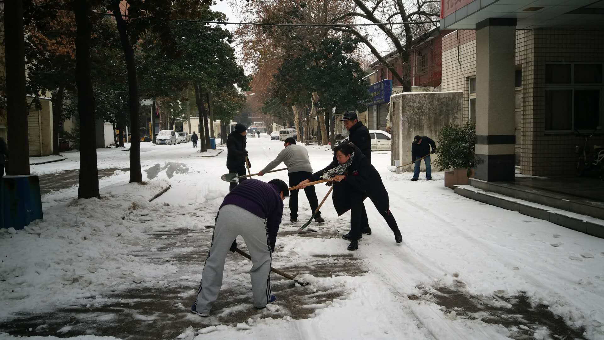 在寒冷的環(huán)境中,大家團(tuán)結(jié)協(xié)作,不畏嚴(yán)寒,有序地清理道路積雪。有的揮舞鐵锨,鏟冰除雪;有的手拿掃帚,清掃路面。