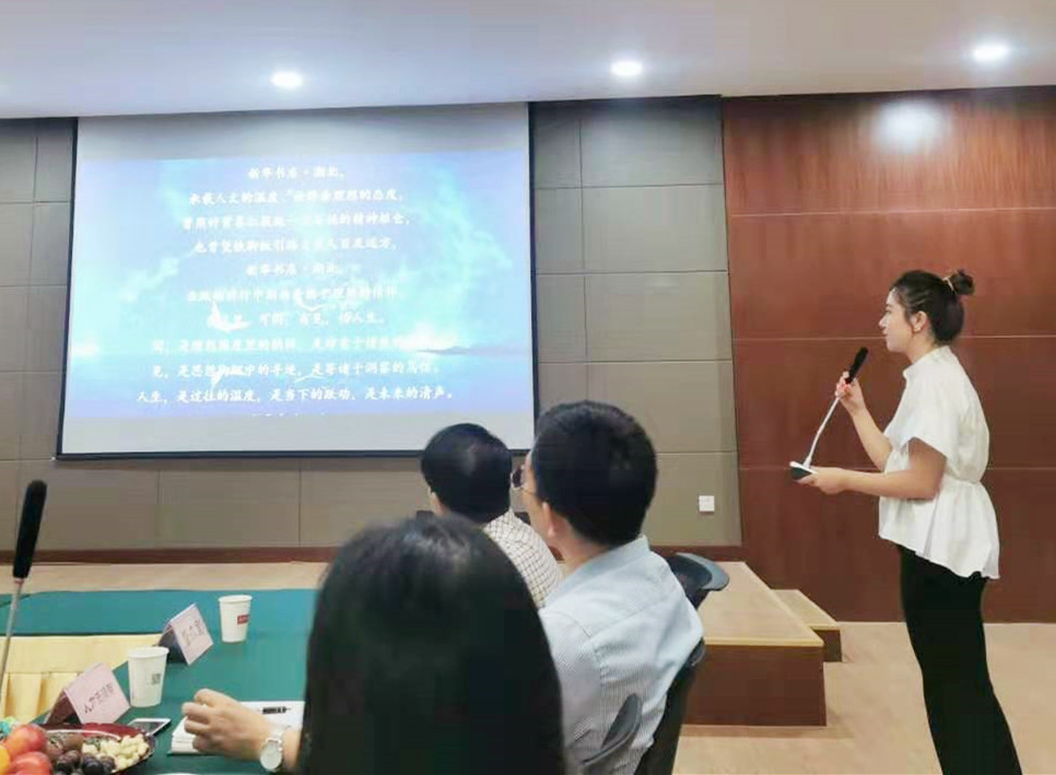 伴隨著優(yōu)美的音樂,集團工會新員工代表丁晨曦朗誦了“因于理想 奉以情懷”的新華書店品牌故事,引起在場觀眾的強烈共鳴。