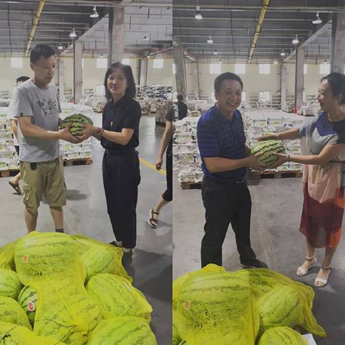 為做好高溫季節(jié)防暑降溫工作,確保一線員工的健康安全,7月24上午,在集團黨委指導(dǎo)下,新華書店集團工會開展了夏日“送清涼 送健康”活動,集團黨委委員、副總經(jīng)理熊靜和工會副主席姚晞來到物流一線,為員工們發(fā)放了西瓜、礦泉水和藥品等防暑降溫物資,給炎熱的物流倉庫送來陣陣清涼。