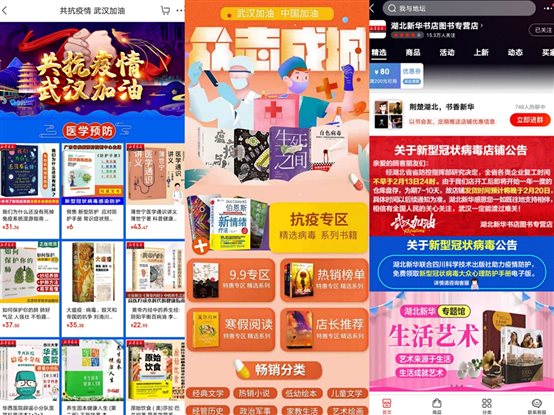 湖北新華在電商平臺開設(shè)了“抗疫專區(qū)、醫(yī)學(xué)推薦、寒假閱讀、店長推薦”等模塊,通過整合出版資源和宣傳資源,做好疫情防控期間知識服務(wù)和線上活動。