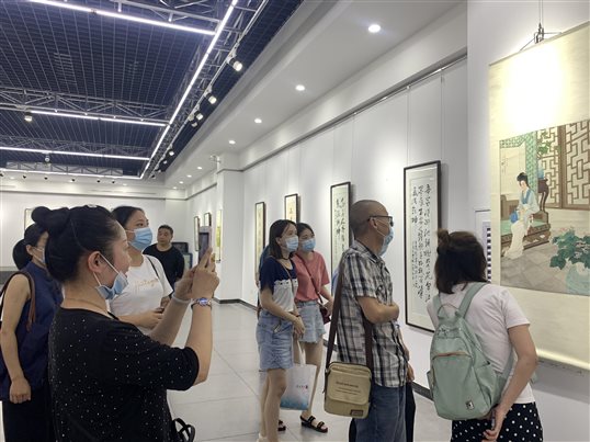 參觀過程中,集團黨員干部認真欣賞參展藝術作品,品味其中含義。有的還拿出手機,將優(yōu)秀的書畫作品拍照,作為留念。