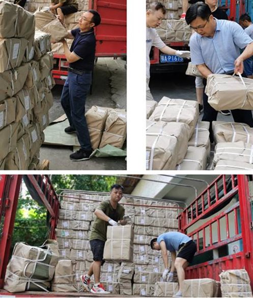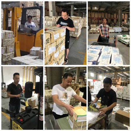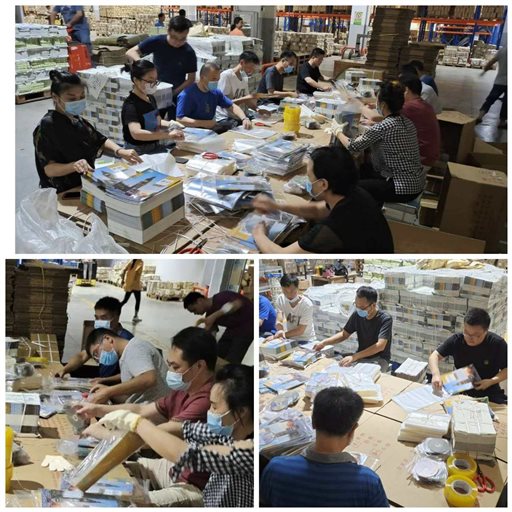 兄弟部門克服高溫,主動伸援手、齊作戰(zhàn)。集團教材運營中心干部員工自發(fā)組建發(fā)運突擊隊,利用周末休息時間到物流倉庫協(xié)助配書包裝作業(yè),完成圖書分配、裝袋、裝箱、打包、貼票等工序,極大地提升了物流高峰期的發(fā)運效率。