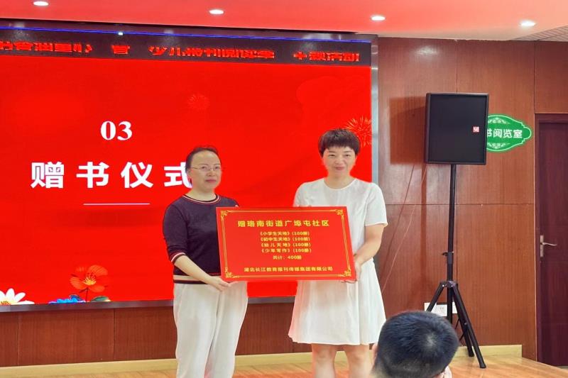 黃燕代表長江教育傳媒集團向廣埠屯社區(qū)捐贈了《小學(xué)生天地》《初中生天地》《幼兒天地》《少年寫作》等精品學(xué)生期刊,為社區(qū)的少年兒童送去豐富的精神食糧。