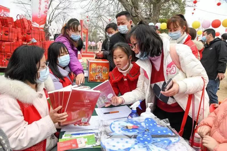 帶著孫女來新洲游玩的張女士在燈謎前駐足觀看,面對一條謎面,不時和丈夫討論謎底,調(diào)皮的小孫女也在一旁助力加油;還沒開學(xué)的小朋友,圍在書畫家前面,欣賞著一幅幅書畫作品,還領(lǐng)到了“福”字作品;現(xiàn)場游客積極參與掃碼分享抽獎活動,各種禮品拿到手軟。喜歡看書的游客們也趁興而來,或現(xiàn)場掃碼下載湖北數(shù)字農(nóng)家書屋APP,閱讀最新上架的電子書;或在圖書展臺前停留,翻閱瀏覽精品圖書?,F(xiàn)場還有舞獅盡興,鑼鼓歡騰,將濃濃的春節(jié)氣氛推向高潮。