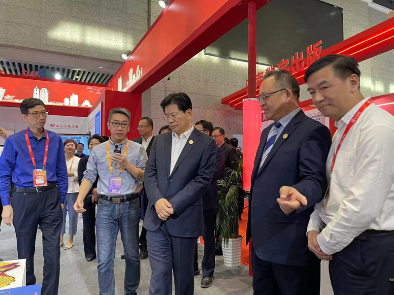中共中央宣傳部副部長張建春視察了湖北展區(qū)。湖北長江出版?zhèn)髅郊瘓F(tuán)有限公司、長江出版?zhèn)髅焦煞萦邢薰军h委書記、董事長黃國斌重點介紹了長江出版?zhèn)髅綌?shù)字出版工作新成果和參展重點數(shù)字出版項目情況。其中,《馬克思主義大辭典》融媒體資源庫給巡展領(lǐng)導(dǎo)留下了深刻印象。