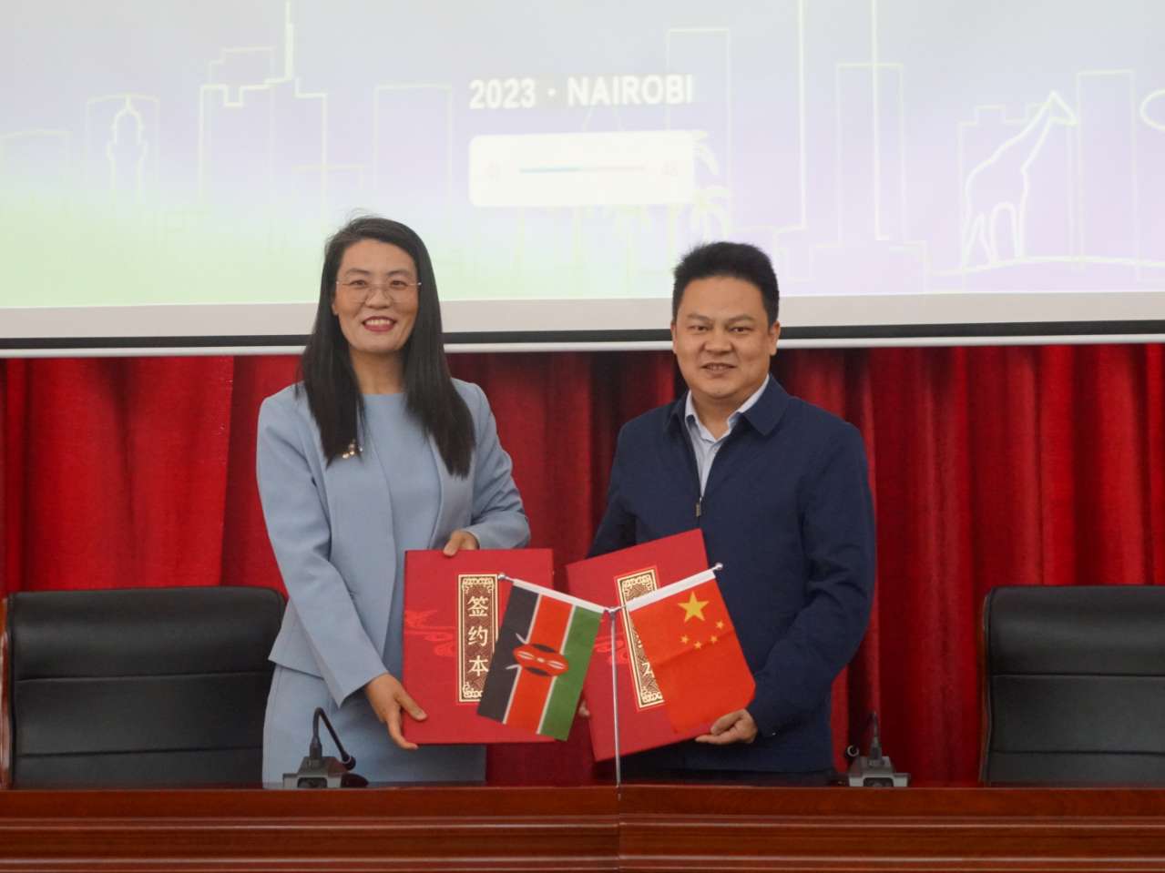 齊亞瑪和黃國斌共同簽署了內(nèi)羅畢大學(xué)與長江出版?zhèn)髅降某霭婧献鱾渫?。?nèi)羅畢大學(xué)孔子學(xué)院中方院長王尚雪、湖北科學(xué)技術(shù)出版社總編輯鄧濤共同簽署了《東非實(shí)用中文課本》出版合作備忘錄,并宣布中文教材出版項(xiàng)目正式啟動(dòng)。