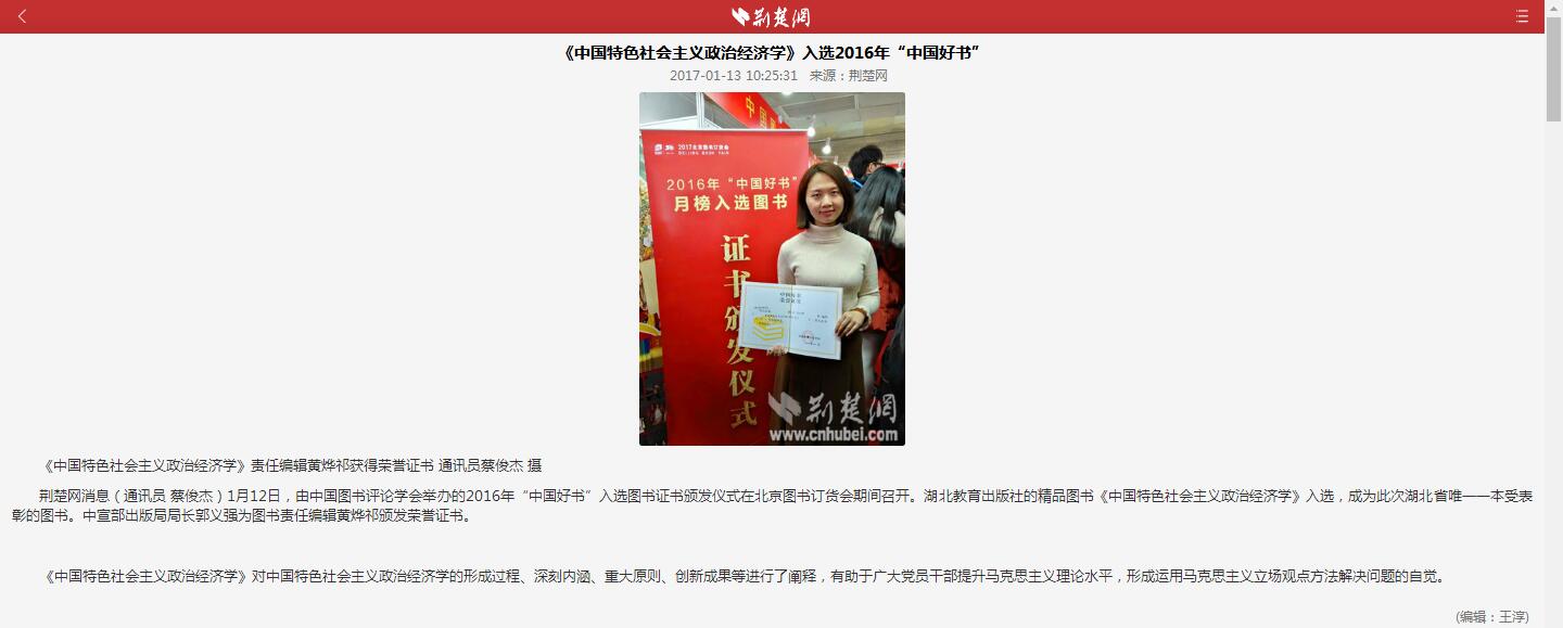 荊楚網(wǎng):《中國特色社會主義政治經(jīng)濟學(xué)》入選2016年“中國好書”
