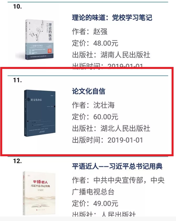2019年4月1日,百道好書榜3月榜單公布,人民社《論文化自信》入選其中的主題出版類目。