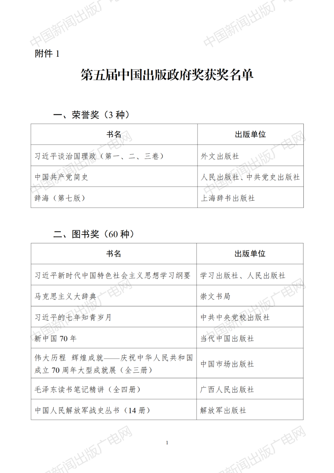 1. 第五屆中國(guó)出版政府獎(jiǎng)獲獎(jiǎng)名單