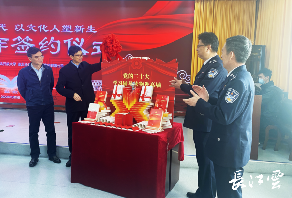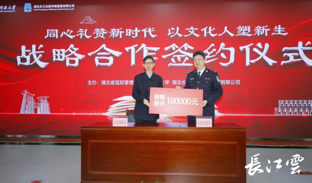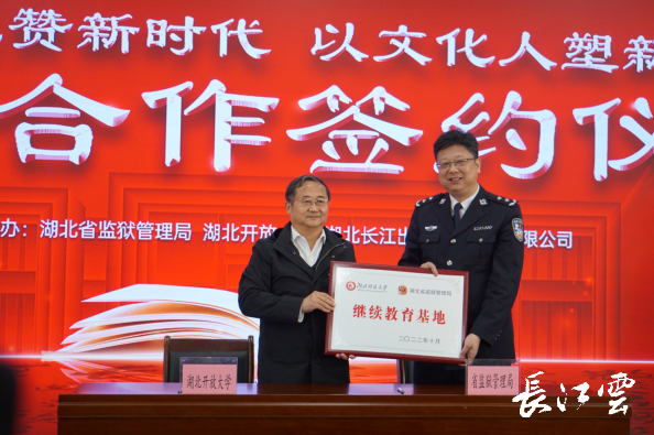 簽約儀式上,湖北開放大學為湖北監(jiān)獄繼續(xù)教育基地揭牌,湖北長江出版?zhèn)髅郊瘓F有限公司為湖北監(jiān)獄捐贈了價值10萬元的圖書,并啟動了“書香文化進監(jiān)獄”活動。