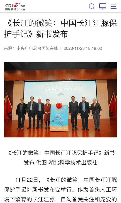 中央廣電總臺國際在線 |《長江的微笑:中國長江江豚保護(hù)手記》新書發(fā)布
