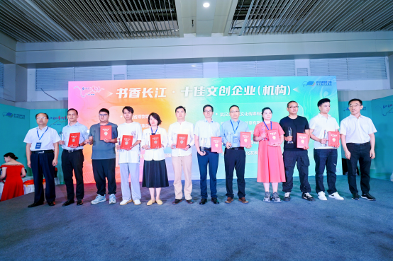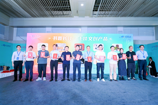 在頒獎環(huán)節(jié),武漢文旅集團副總經(jīng)理趙樂軍和武漢文化創(chuàng)意產(chǎn)業(yè)協(xié)會秘書長仇海波共同頒發(fā)了“書香長江·十佳文創(chuàng)產(chǎn)品”獎項。