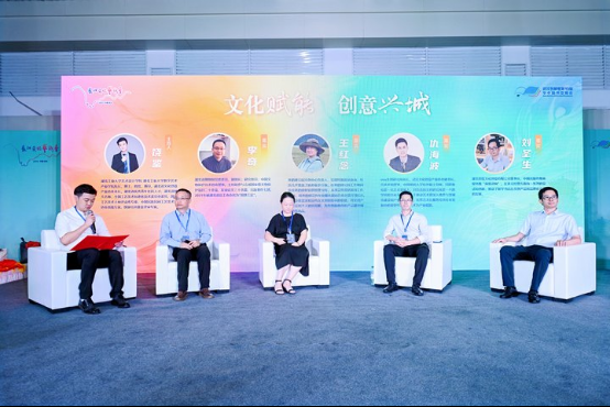 隨后的文化創(chuàng)意沙龍環(huán)節(jié),湖北省文化創(chuàng)意產(chǎn)業(yè)協(xié)會會長饒鑒、湖北省博物館副館長李奇、黃鶴樓公園管理處文創(chuàng)中心負責人王紅念、武漢文化創(chuàng)意產(chǎn)業(yè)協(xié)會秘書長仇海波、湖北倍悅文化創(chuàng)意有限公司董事長劉圣生圍繞“文化賦能 創(chuàng)意興城”的主題,就荊楚文化創(chuàng)新進行了一場思想碰撞和智慧激蕩的交流。