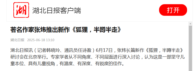 湖北日?qǐng)?bào)客戶端 |著名作家張煒推出新作《狐貍,半蹲半走》